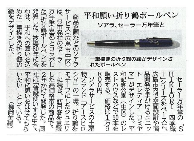 中国新聞「平和発信の広島土産販売」 (EARTH Hiroshimaノーベル平和センターにて期間限定販売)